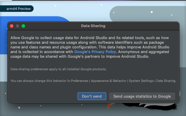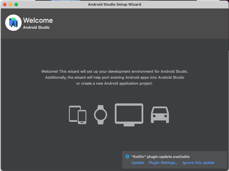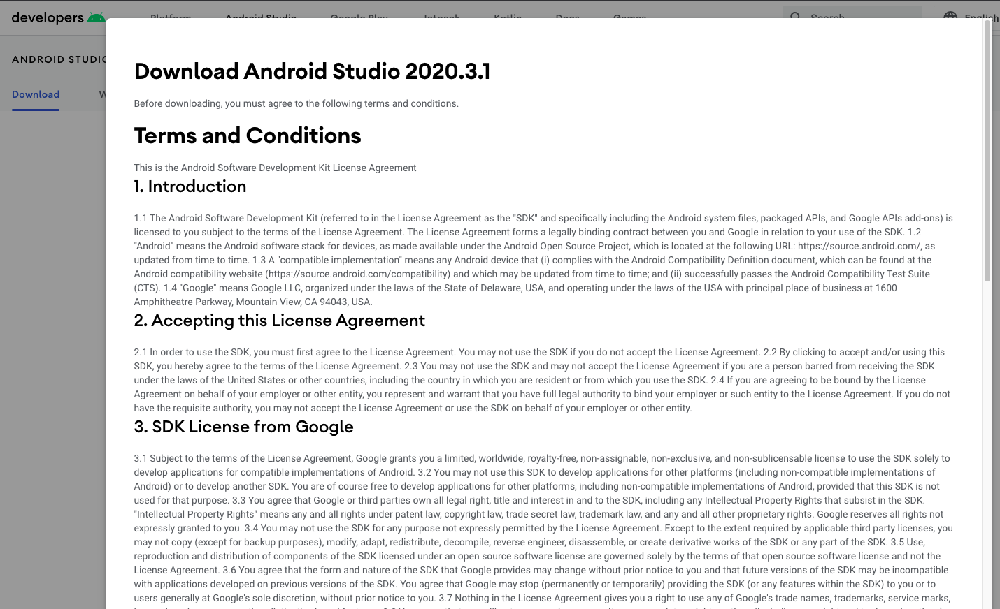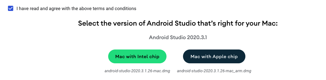 Download Android Studio 버튼을 클릭합니다.