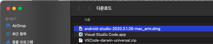 안드로이드 스튜디오를 다운로드 하고 더블클릭 해서 설치를 합니다.